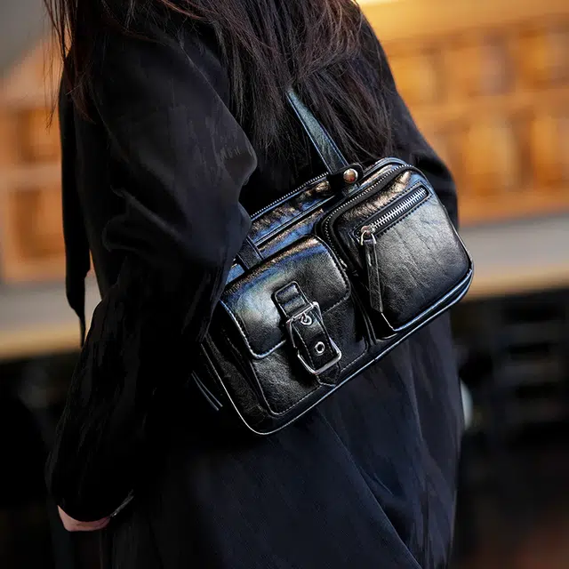 Сумка 戈兰黛 百搭时尚高级质感波士顿枕头包 植鞣牛皮 单肩包斜挎包手提包 女款 黑色/棕色
