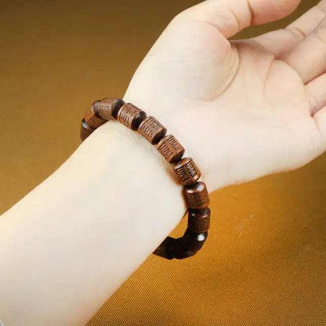 镯瑾 【高品质】平安喜乐 文玩佛珠 串珠 复古国潮手饰 文艺简约风 招财纳福 单圈好运素串创意独特 竹木 手串 男女同款情侣款