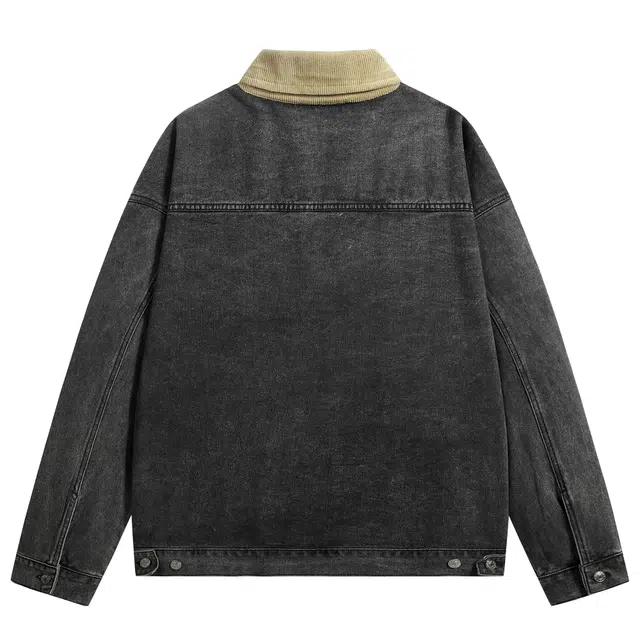 Джинсовая куртка 泰迪珍藏 美式复古字母印花纯色基础款水洗做旧夹克嘻哈街头宽松休闲翻领百搭牛仔外套 男女同款