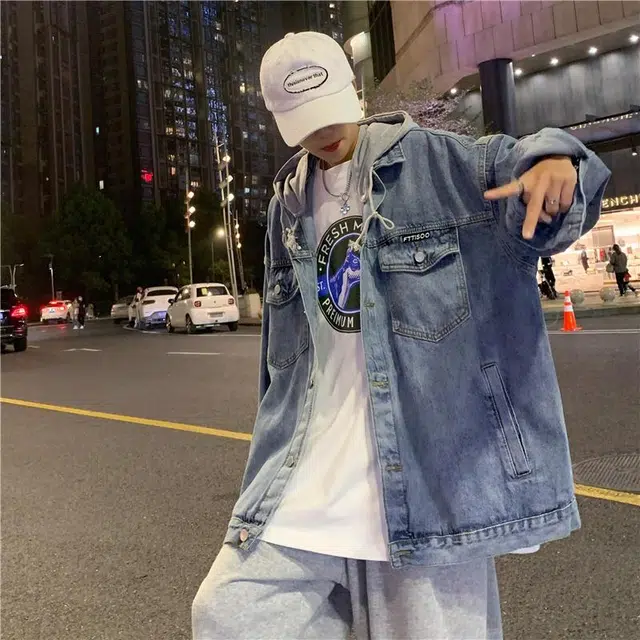 Джинсовая куртка 玉儿恋 美式复古水洗做旧破洞潮流宽松休闲百搭牛仔外套 男女同款