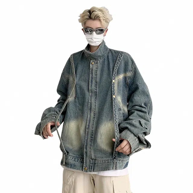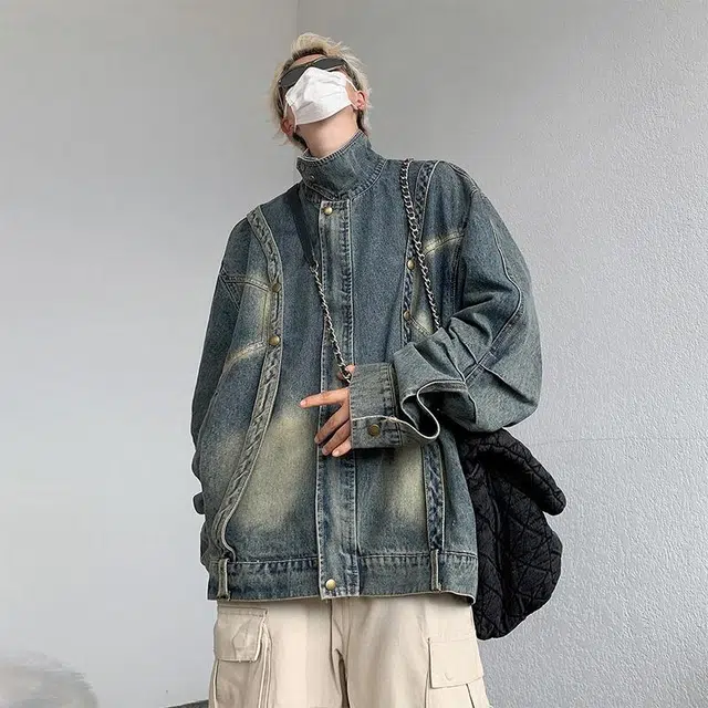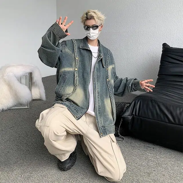 Джинсовая куртка 玉儿恋 美式复古做旧水洗街头宽松翻领单排扣牛仔外套 男女同款