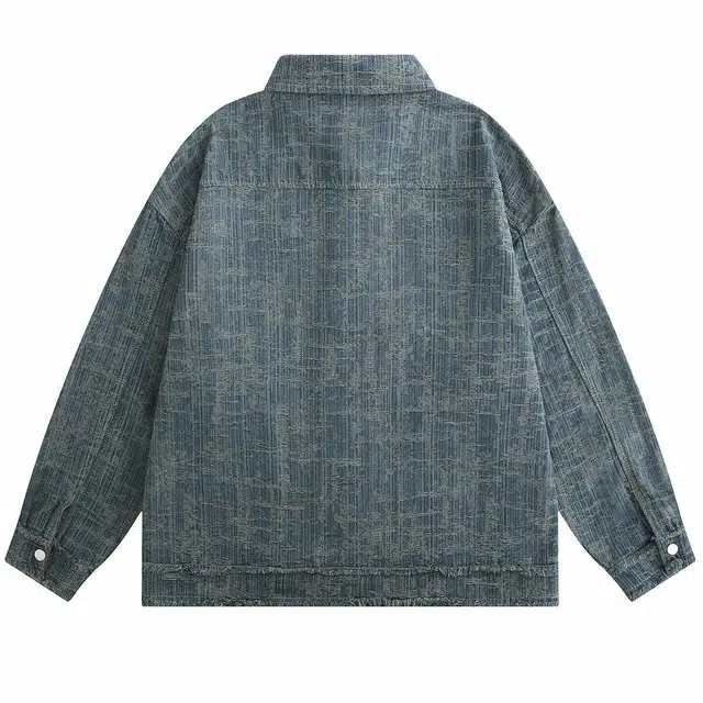 Джинсовая куртка 玉儿恋 美式复古蝴蝶提花破洞街头潮牌设计感小众宽松牛仔外套 男款 蓝色