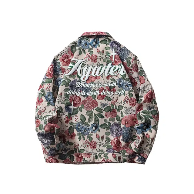 Джинсовая куртка 玉儿恋 美式高街复古字母碎花满印休闲牛仔外套 男款 红色