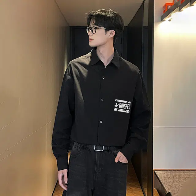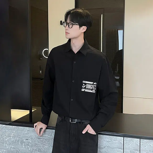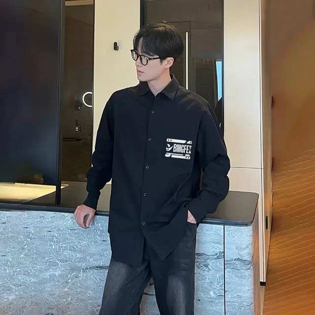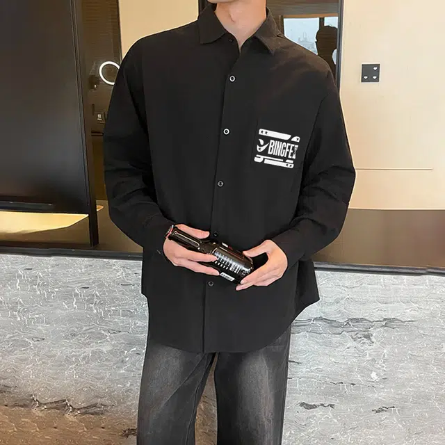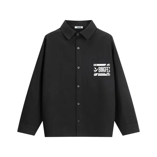 Рубашка 冰飞 美式复古简约字母学院风宽松休闲百搭少年感日常通勤翻领舒适无性别长袖衬衫 男女同款