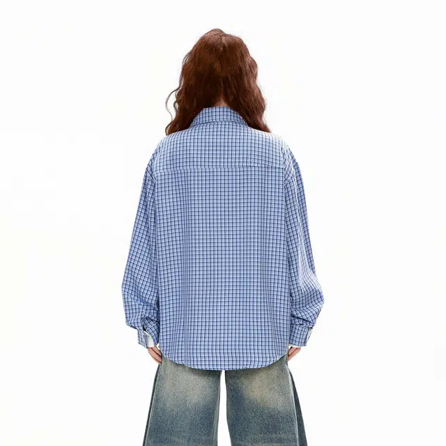 Рубашка 冰飞 美式复古嘻哈高街小众设计宽松休闲舒适格子褂子外套上衣服少年感穿搭潮牌潮流学院风工装长袖衬衫 男女同款