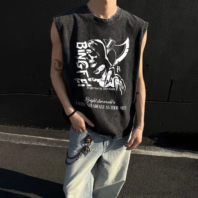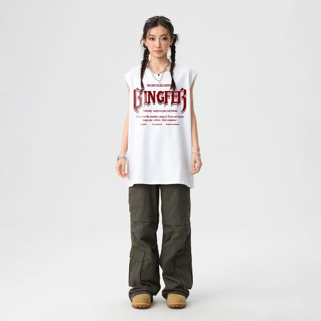 Майка 冰飞 美式复古高街宽松背心 男女同款