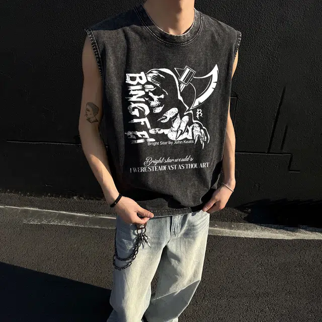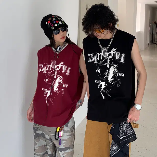 Майка 冰飞 美式复古高级感潮牌潮流百搭无袖背心 男女同款