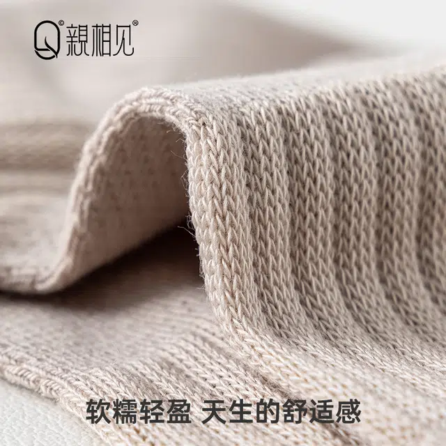 Носки 亲相见 纯棉防脚气防臭条纹简约中筒袜 女款