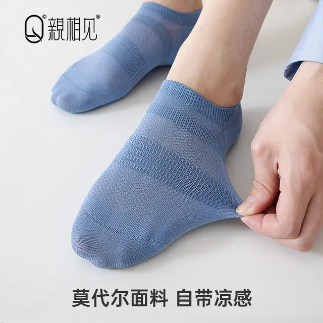 亲相见 纯色网眼防臭吸汗透气隐形船袜 男款 组合装