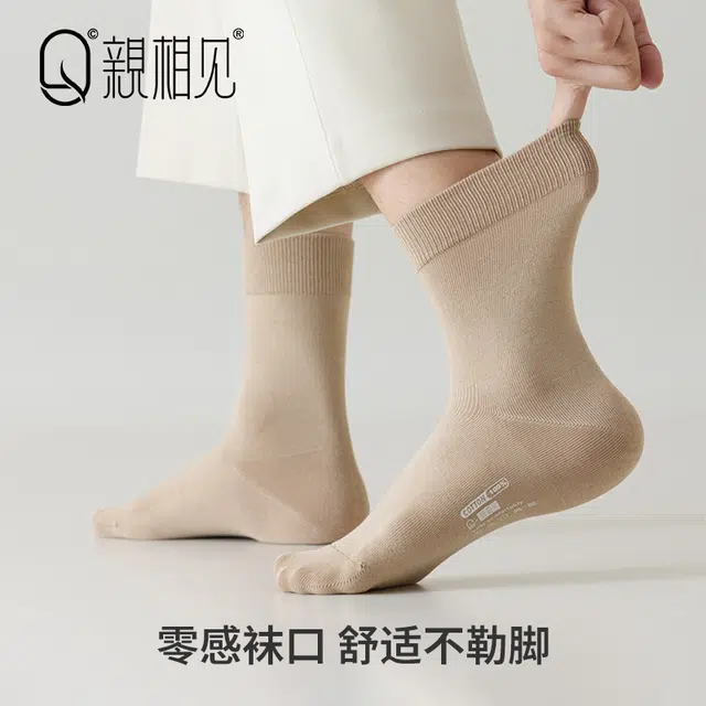 Носки 亲相见 纯棉防臭抑菌纯色简约中筒袜 男款