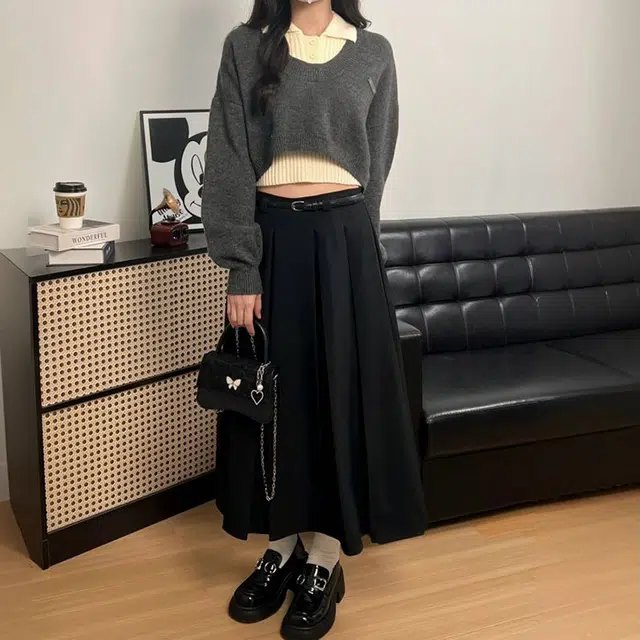 冰淇淋与鲸 学院风美式卫衣复古日系毛衣收腰长袖衬衫休闲半身裙裙装套装 女款