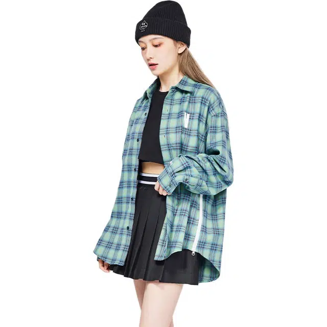 Рубашка 南波万 格子宽松型单排扣长袖衬衫 男女同款