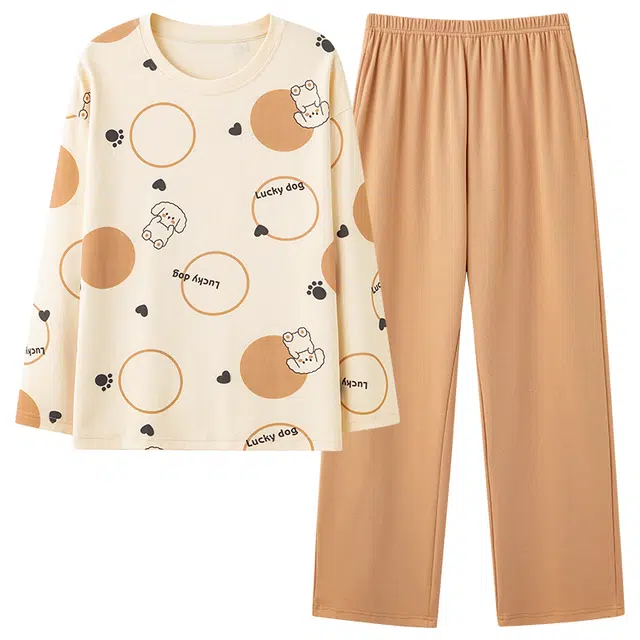 桔内 秋季纯棉可爱卡通小狗带胸垫柔软宽松可外穿家居服 睡衣套装 女款