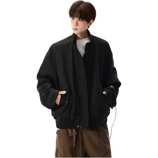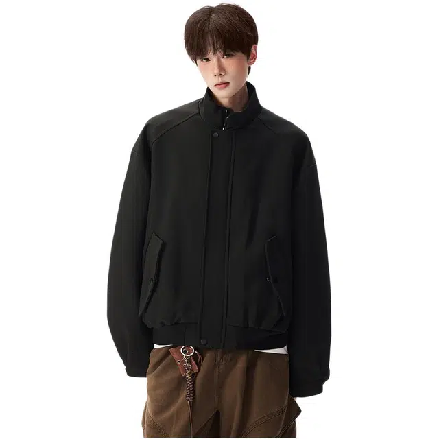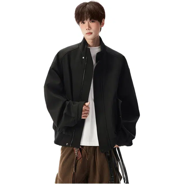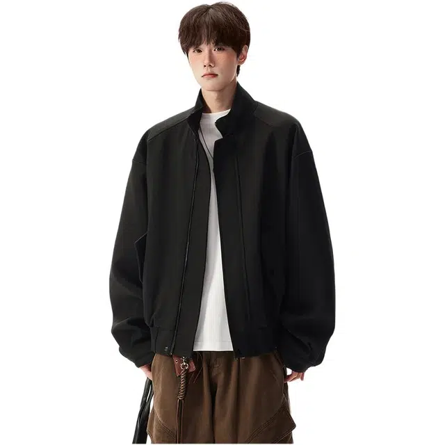 颂希尔 美式潮牌港风痞帅立领西装短款设计春季高级感宽松飞行员翻领休闲外套夹克 男女同款
