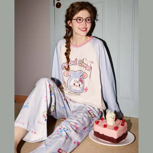 GUKOO x Sanrio Hello Kitty Striped Pajama Set Milk White