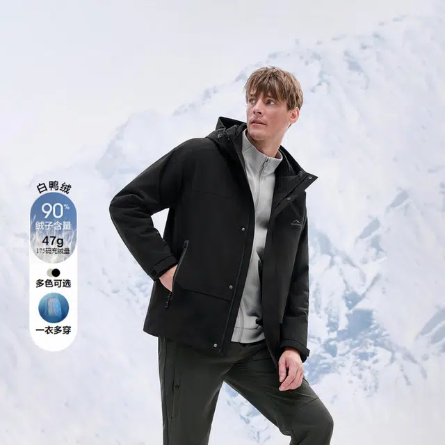 面料:聚酯纤维100%(非纤维物质除外)里料1∶聚酯纤维100%里料2:聚酯纤维100%(非纤维物质除外)填充物一:鸭绒(绒子含量90%)填充物二:聚酯纤维100%