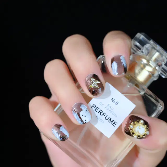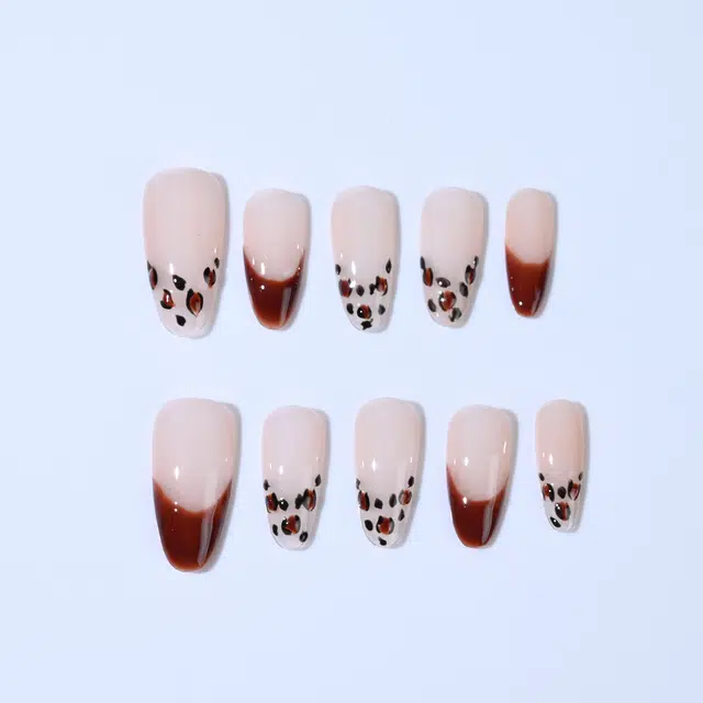 栩靓 网红爆款金花仙子纯手工穿戴甲裸色纯欲风富贵奢华立体黄金花美甲 中长款