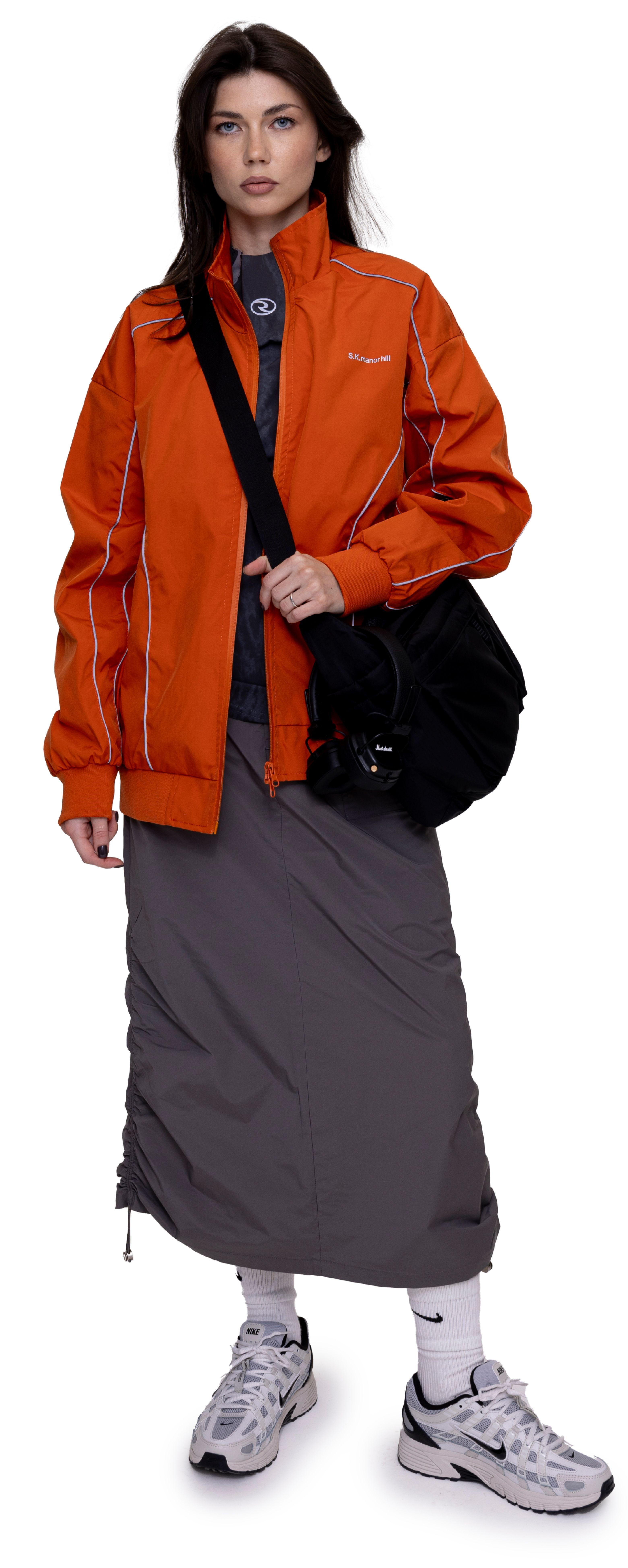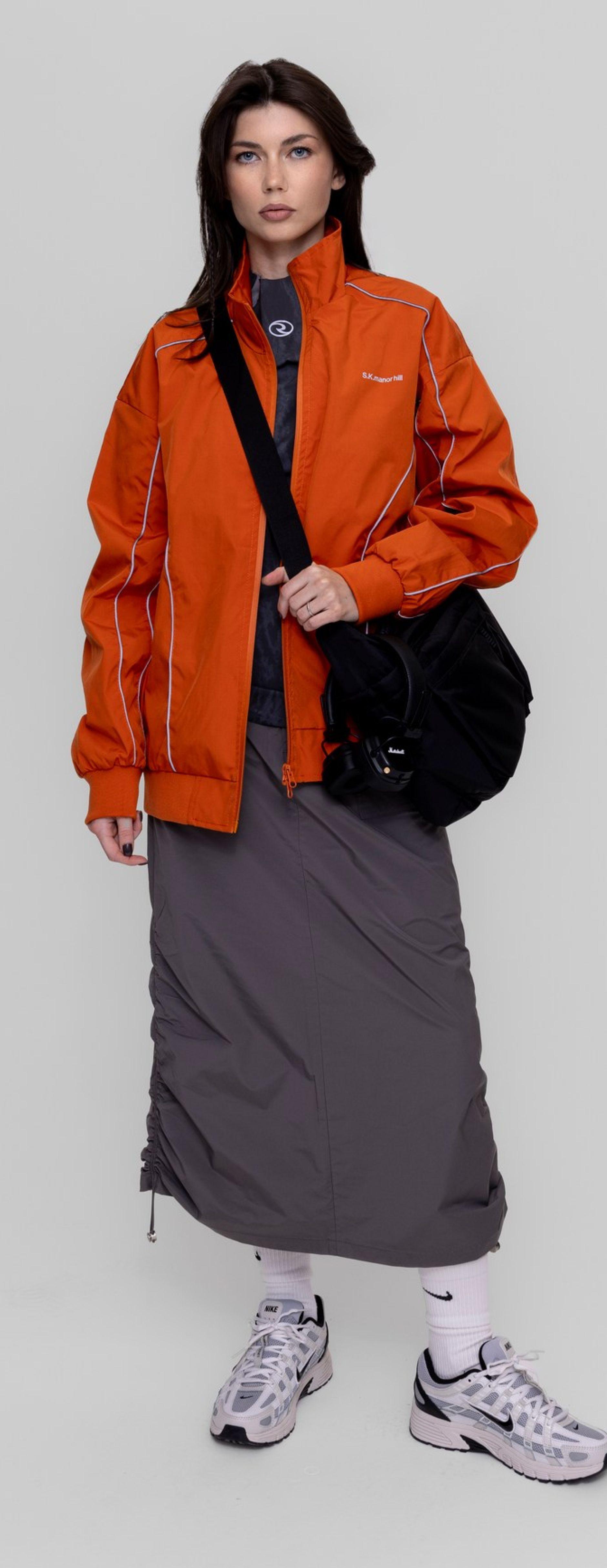 Хотите выделиться в сером городском потоке, но не потерять комфорт? Яркая оранжевая куртка привносит смелость и энергию в образ, а минималистичное серое платье с прямым кроем добавляет лёгкости и элегантности. Такой сет подойдёт для тех, кто ценит баланс между практичностью и стилем, будь то прогулка по мегаполису или неформальная встреча с друзьями. Кроссовки завершают образ, добавляя спортивного настроения и свободы движений.
